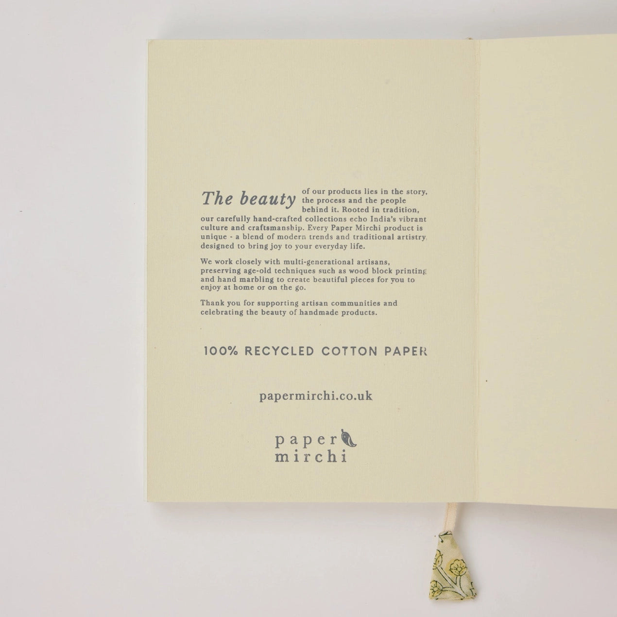 Each Paper Mirchi notebook begins not on a printing press, but at the hands of skilled artisans – where blocks are carved, colours are mixed and patterns come to life through the ancient craft of hand block printing and marbling. Every cover is a small work of art, made slowly and with intention.