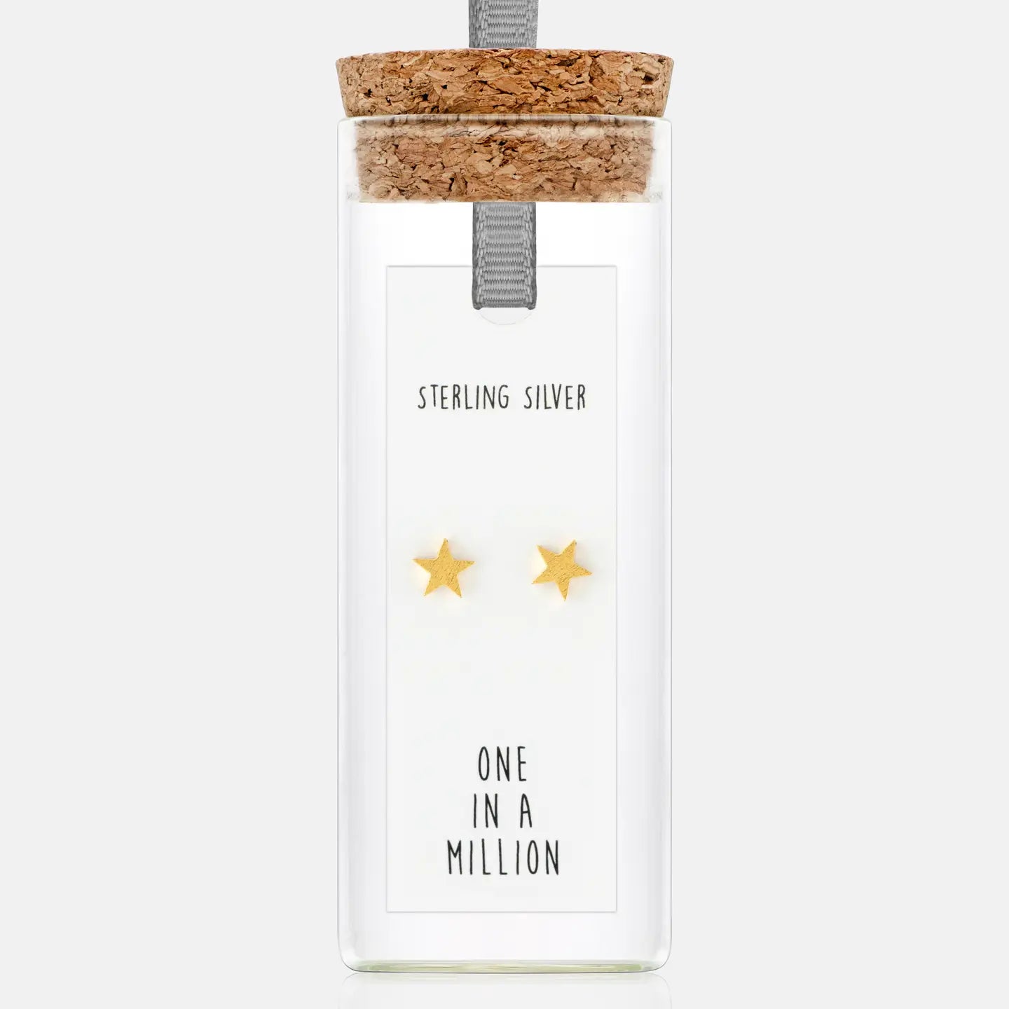 Sweet and pretty tiny studs, beautifully presented in reusable glass bottles, with a personalised One in a Million insert card.