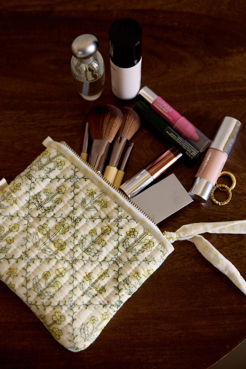 Thoughtfully handcrafted from 100% organic quilted cotton and finished with our signature block print designs, this set of two pouches is designed to keep you beautifully organised – from make-up and jewellery to coins, keys or travel must-haves – these pouches are versatile as they are charming.