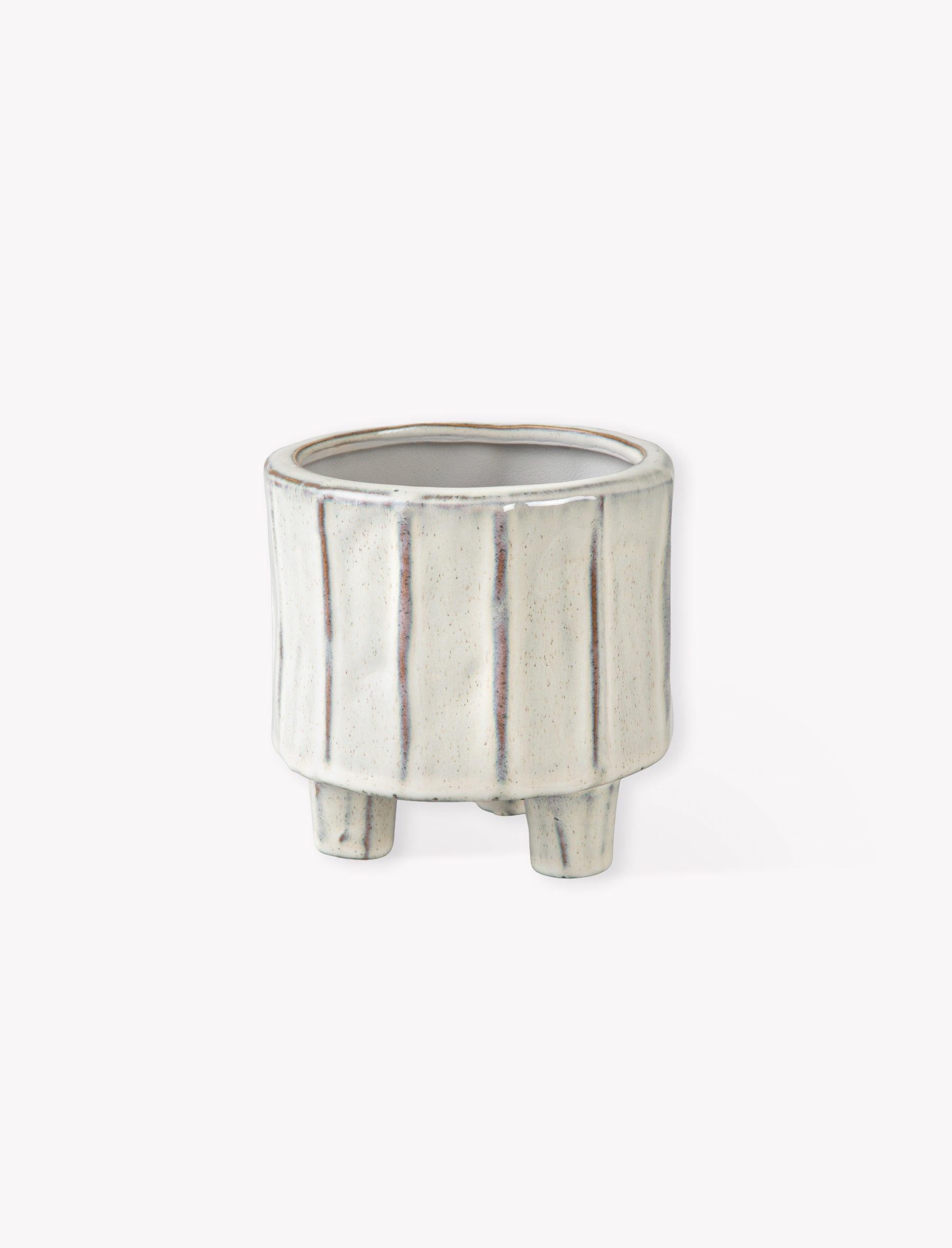 This stoneware pot rests elegantly on feet, bringing lightness and sculptural presence to any windowsill, mantelpiece, or console table. Its organic linear design complements succulents, cacti, or small houseplants, allowing each arrangement to take centre stage. Finished with a waterproof seal on the inside, it combines practicality with understated beauty.