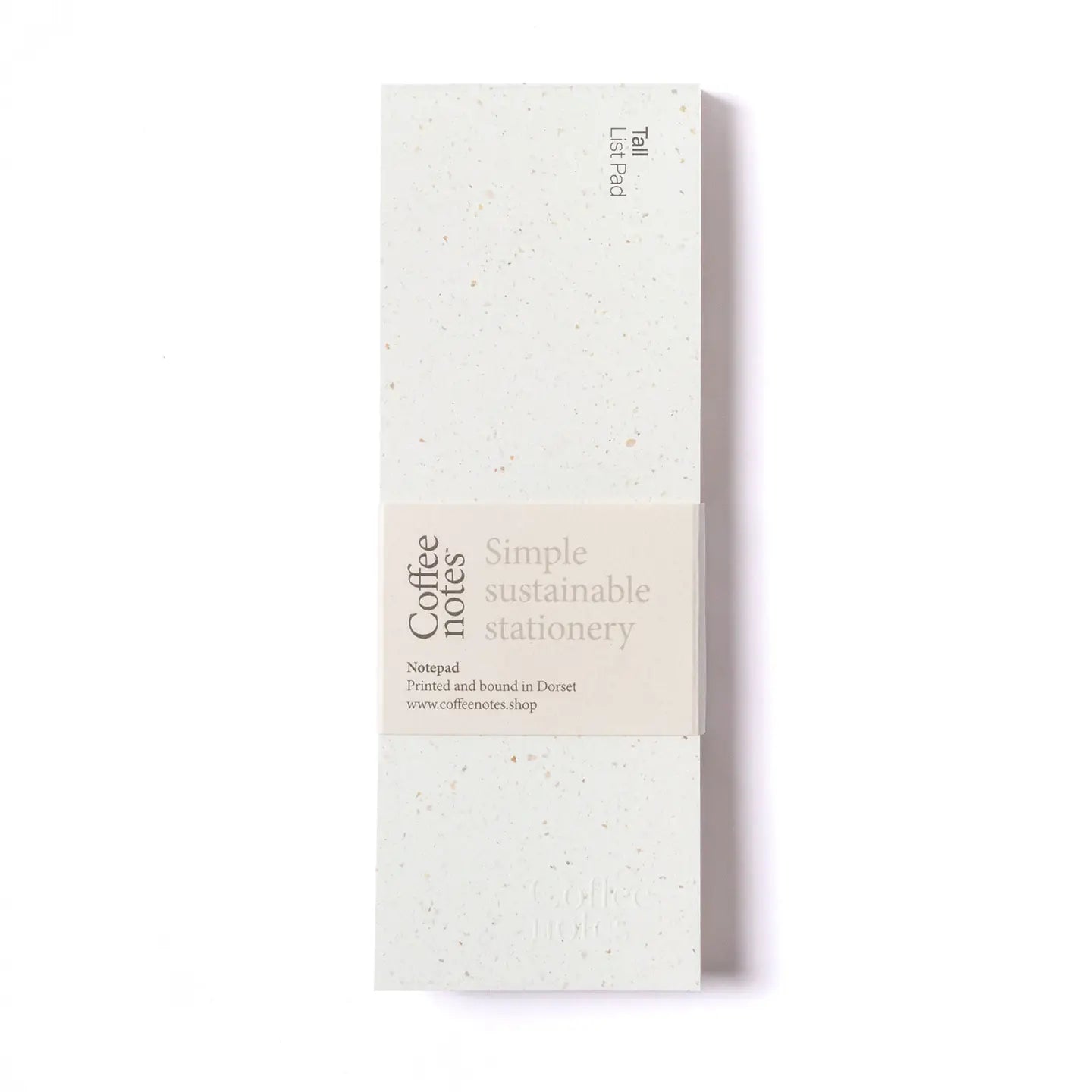 A sustainable list pad made from {re}cycled coffee cup paper and {re}purposed coffee waste. Ideal for 'to do' or shopping lists at home or the office.